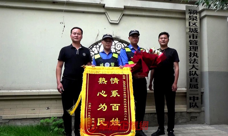本網(wǎng)訊(費(fèi)之路) 5月27日下午,阜陽市民徐先生帶著印有“情系百姓、熱心為民”的錦旗和鮮花來到潁泉區(qū)城市管理執(zhí)法大隊(duì)直屬二中隊(duì),把錦旗和鮮花交到了城管隊(duì)員馬帥和張宇琛的手中,并連連表示感謝! 據(jù)徐先生介紹,他自身是市創(chuàng)業(yè)協(xié)會(huì)四分會(huì)的會(huì)員,其女兒在實(shí)驗(yàn)二小就讀,平時(shí)都是家人接送,5月26日下午,由于自己在參加分會(huì)會(huì)議,就沒有送女兒去學(xué)校,讓她自己去了。結(jié)果在開會(huì)過程中接到電話說女兒在上學(xué)的路上迷路了。 據(jù)了解,當(dāng)時(shí)孩子迷路之后就一個(gè)人蹲在太和路農(nóng)貿(mào)市場哭泣。在農(nóng)貿(mào)市場賣水果的老大爺發(fā)現(xiàn)情況后,出于好心就想把孩子送到學(xué)校去,由于大爺年事已高、聽力不好、又不熟悉路,結(jié)果錯(cuò)把孩子送到了實(shí)驗(yàn)小學(xué)北校區(qū)。到地方,孩子一看學(xué)校不對(duì),又嚎啕大哭了起來。老大爺看到學(xué)校門口有城管,于是就帶著孩子找到了正在學(xué)校門口執(zhí)勤的城管尋求幫助。 執(zhí)勤城管馬帥和張宇琛得知情況后,在安撫孩子的同時(shí)從孩子的電話手表中聯(lián)系上了徐先生,一直在原地等到徐先生從會(huì)場趕到學(xué)校,待孩子確認(rèn)關(guān)系之后才把孩子交到了徐先生手中。 “情系百姓、熱心為民”!傳播正能量,一直在路上!讓我們?yōu)楦烦菬嵝牡某枪芎屠洗鬆旤c(diǎn)贊! |